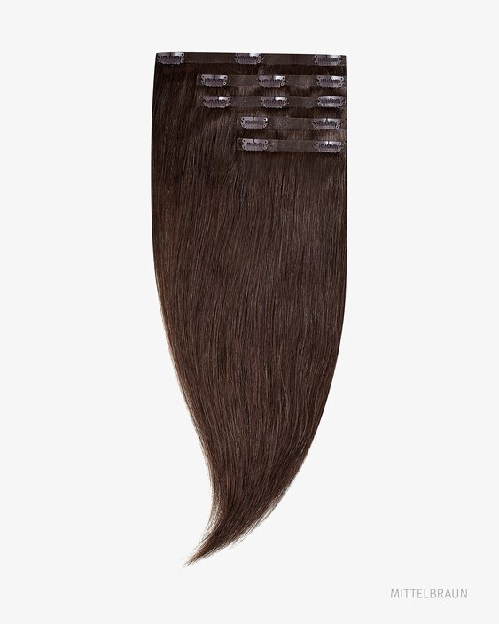 Clip-in ist zurzeit die beste Methode für eine schnelle und effektvolle Haarverlängerung und/oder Haarverdichtung. Sie können diese Extensions innerhalb weniger Minuten selbst anbringen. Nahtlose Clip-in Extensions unterscheiden sich von den "traditionellen" Clip-in Sets dadurch, dass die Tressenränder nicht genäht, sondern geschweißt werden. Infolge dessen sind die Tressen flach mit einem viel dünneren Verbindungspunkt, der bei der Berührung auf dem Kopf fast unfühlbar. Abgesehen davon unterscheiden sie sich nicht weiter von den Clip-in Extensions mit Nähten. Nahtlose Haare verkaufen wir nur in der Version mit 5 Tressen und 13 Clips.