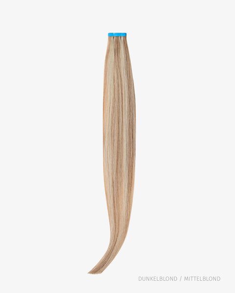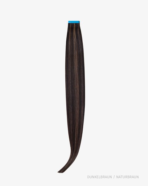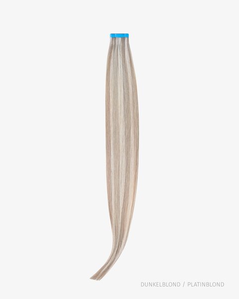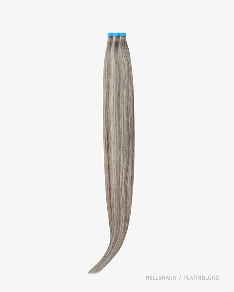 Im Gegensatz zu Clip-in Extensions, sind Tape-in Extensions 50cm eine permanente Haarverlängerungs-Methode. Die Haare müssen von einer entsprechend qualifizierten Person angebracht werden. Gewöhnlich beträgt die Tragedauer 4-8 Wochen; danach müssen die Tressen wegen dem Nachwachsen des Eigenhaars erneut hochgesetzt werden. Die Tape-in Tressen enthalten auswechselbare Streifen und man kann sie zyklisch, z. B. im Wechsel mit Clip-in Extensions, tragen. Wir lassen die Haare somit eine Weile ruhen, nachdem die Tape-extensions-Methode für eine bestimmte Zeit benutzt wurde (dies ist trotz anderslautender Meinungen mancher Leute sehr empfehlenswert). Nach ein paar Wochen Ruhephase mit Clip-ins können Sie dann wieder zu den Tape-in Extensions zurückkehren. Ob Sie Ihren Haaren solch eine Ruhephase gönnen, bleibt Ihnen natürlich ganz selbst überlassen.