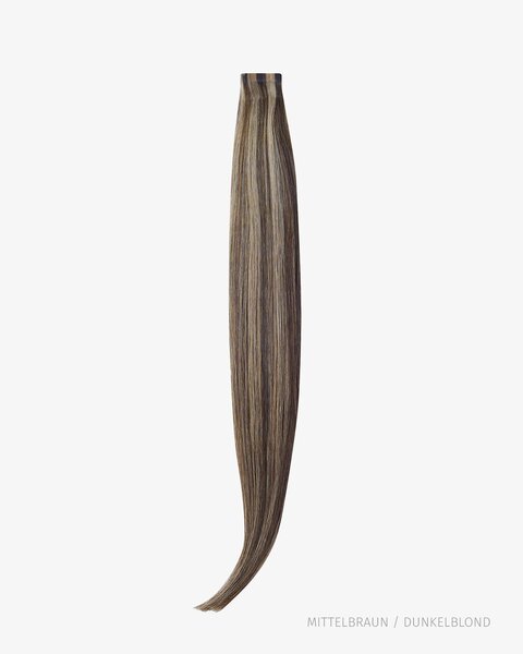 Im Gegensatz zu Clip-in Extensions, sind Tape-in Extensions eine permanente Haarverlängerungs-Methode. Die Haare müssen von einer entsprechend qualifizierten Person angebracht werden. Gewöhnlich beträgt die Tragedauer 4-8 Wochen; danach müssen die Tressen wegen dem Nachwachsen des Eigenhaars erneut hochgesetzt werden. Die Tape-in Tressen enthalten auswechselbare Streifen und man kann sie zyklisch, z. B. im Wechsel mit Clip-in Extensions, tragen. Wir lassen die Haare somit eine Weile ruhen, nachdem die Sandwich-Methode für eine bestimmte Zeit benutzt wurde (dies ist trotz anderslautender Meinungen mancher Leute sehr empfehlenswert). Nach ein paar Wochen Ruhephase mit Clip-ins können Sie dann wieder zu den Tape-in Extensions zurückkehren. Ob Sie Ihren Haaren solch eine Ruhephase gönnen, bleibt Ihnen natürlich ganz selbst überlassen.
